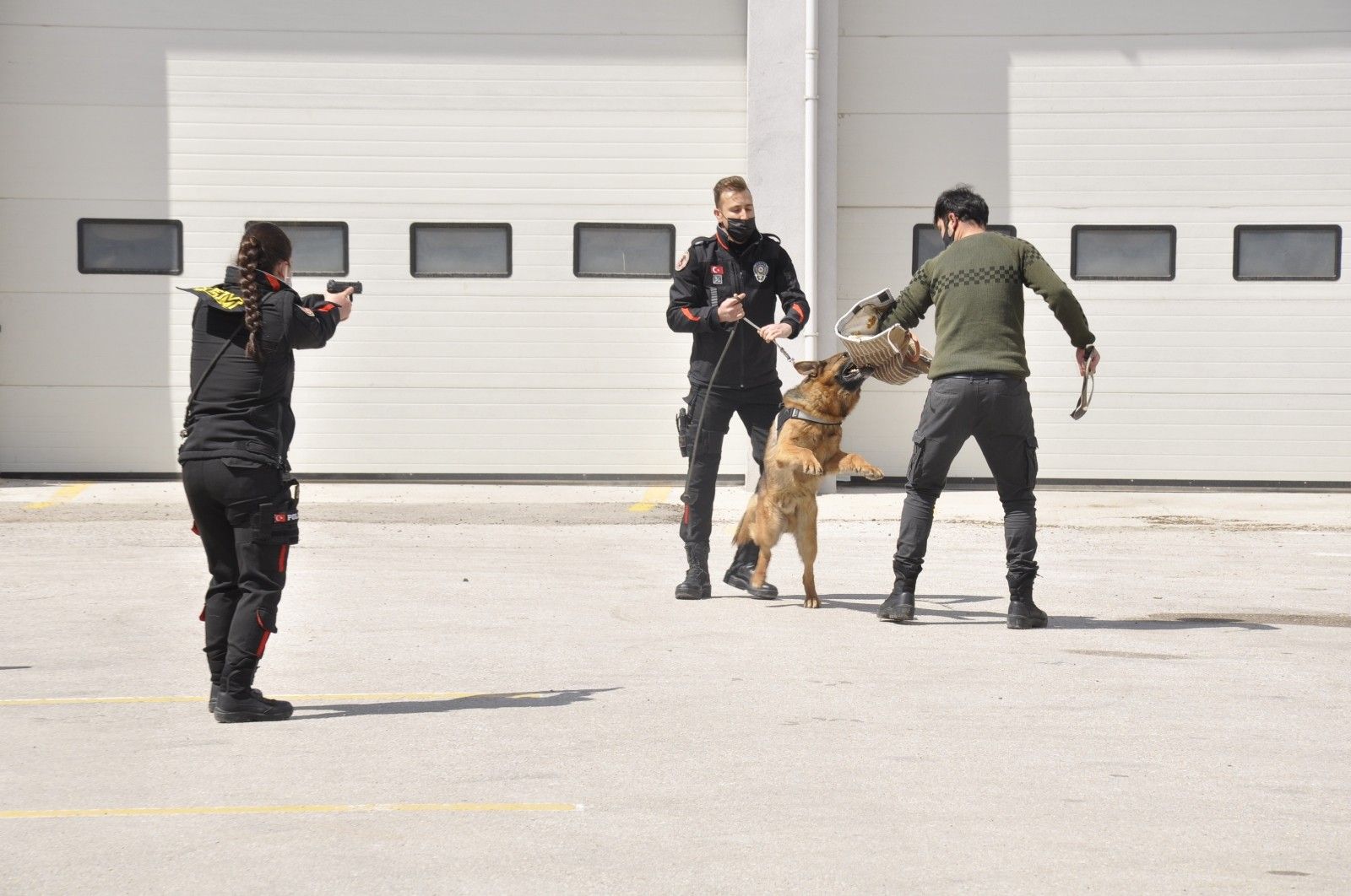 Gösteride eğitimli polis köpekleri, eğitmenleriyle birlikte yerleşke bahçesinde kurulan parkurda yeteneklerini sergiledi. Kaçakçılık ve uyuşturucu, izinsiz yürüyüşler, kapkaç, saldırı ve savunma gibi durumlarda köpeklerin tepkilerinin sergilendiği gösteri izleyenlerin beğenisini topladı.