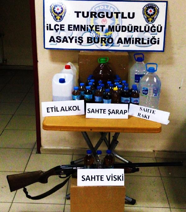 MANİSA'nın Turgutlu ilçesinde düzenlenen sahte içki operasyonunda 17 litre sahte şarap, 10 litre rakı, 1 litre viski, 5 litre etil alkol ele geçirildi, 6 şüpheli hakkında adli işlem yapıldı.