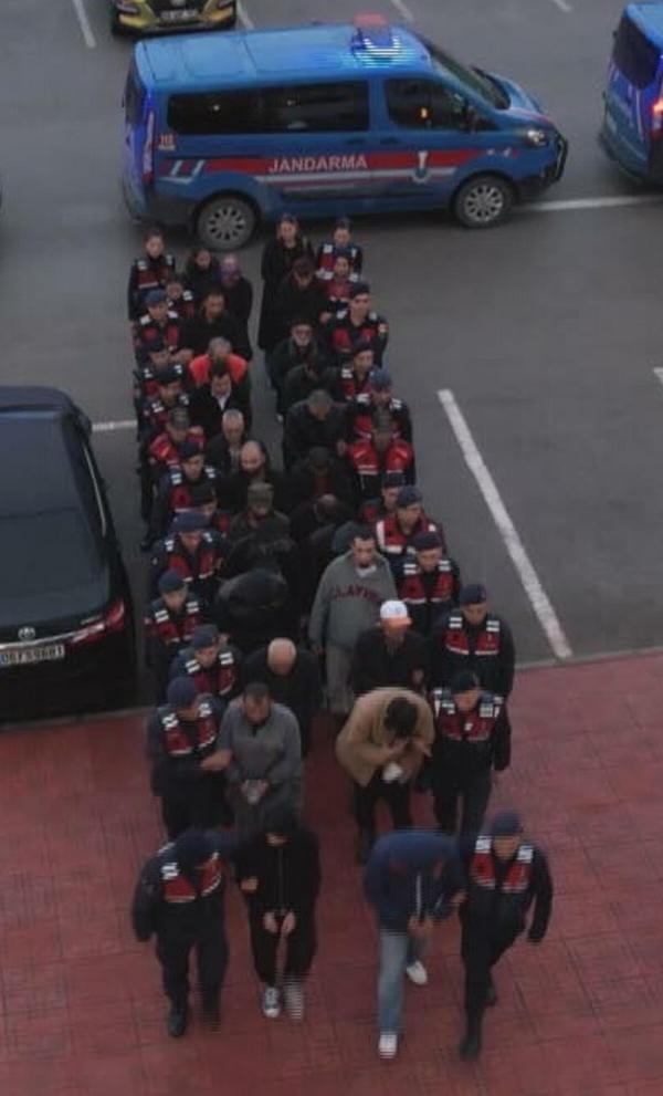 Şüphelilere yönelik 26 Kasım'da Muğla merkezli İstanbul, İzmir, Ankara, Tokat, Manisa, Gaziantep, Bursa, Eskişehir, Samsun, Mersin, Hatay, Zonguldak, Yozgat ve Aksaray'da operasyon düzenlendi. Şüphelilerin ev ve iş yerlerinde yapılan aramada; 27 cep telefonu, 9 tablet, 42 SIM kart, 6 hard disk, 6 dizüstü bilgisayar, 1 POS cihazı, 10 senet, 5 şirket kaşesi, çok sayıda ödeme evrakı, paravan şirketlerine yönelik not defterleri, 1 ruhsatsız pompalı tüfek, 1 ruhsatsız tabanca ve 12 tabanca mermisi ele geçirildi. Eş zamanlı baskınlarda gözaltına alınan 25 şüpheli, Muğla'ya getirildi. Jandarmada işlemleri tamamlanan 25 şüpheli, sabah saatlerinde adliyeye sevk edildi. (DHA)