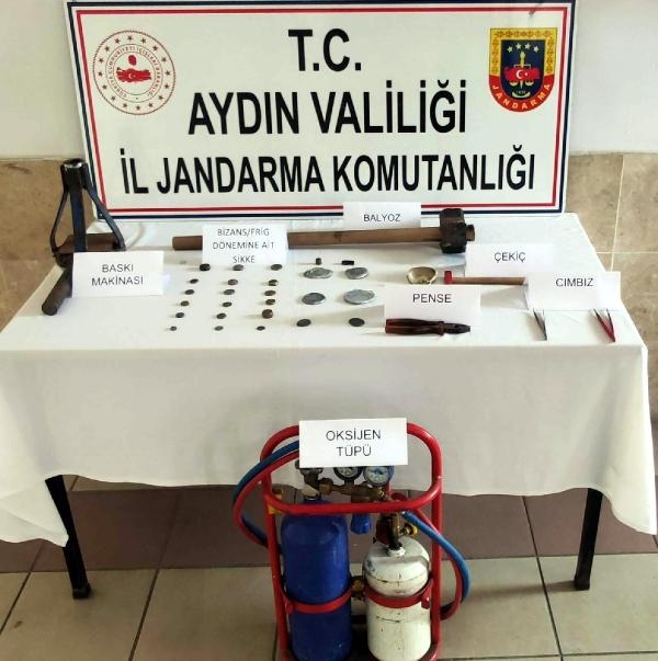 Aydın İl Jandarma Komutanlığına bağlı ekipleri, istihbarat çalışmasıyla Hamidiye Mahallesi'nde atıl durumdaki bir evde sahte sikke ürettiği yapıldığı bilgisine ulaştı. Söz konusu eve, dün akşam operasyon düzenledi. Evdeki aramada sahte olarak üretildiği belirlenen 22 Roma, Bizans ve Frig dönemine ait sikke, antimon maddesinden yapılmış sahte 4 sikke, 1 sikke yapımında kullanılan oksijen kaynağı, balyoz, çekiç, pense, cımbız ve 1 baskı makinesi ele geçirildi. Evde bulunan 3 şüpheli ise gözaltına alındı. Şüpheliler jandarmadaki işlemlerinin ardından sevk edildikleri adliyede mahkemece serbest bırakıldı.(DHA)