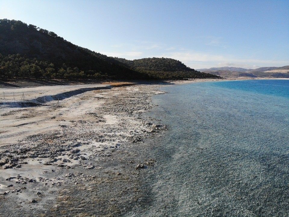 Burdur'un Yeşilova ilçesinde kumsalı ve rengi ile Türkiye'nin Maldivleri olarak bilinen Salda Gölü'ne her geçen yıl ilgi daha da artıyor. Ancak turist sayının arttığı gölde son yıllardaki kuraklık nedeniyle su seviyesinde çekilmeler yaşanıyor. Yaklaşık 30 metreye ulaşan çekilmelerle gölün bazı bölgelerinde küçük adacıklar ortaya çıktı.