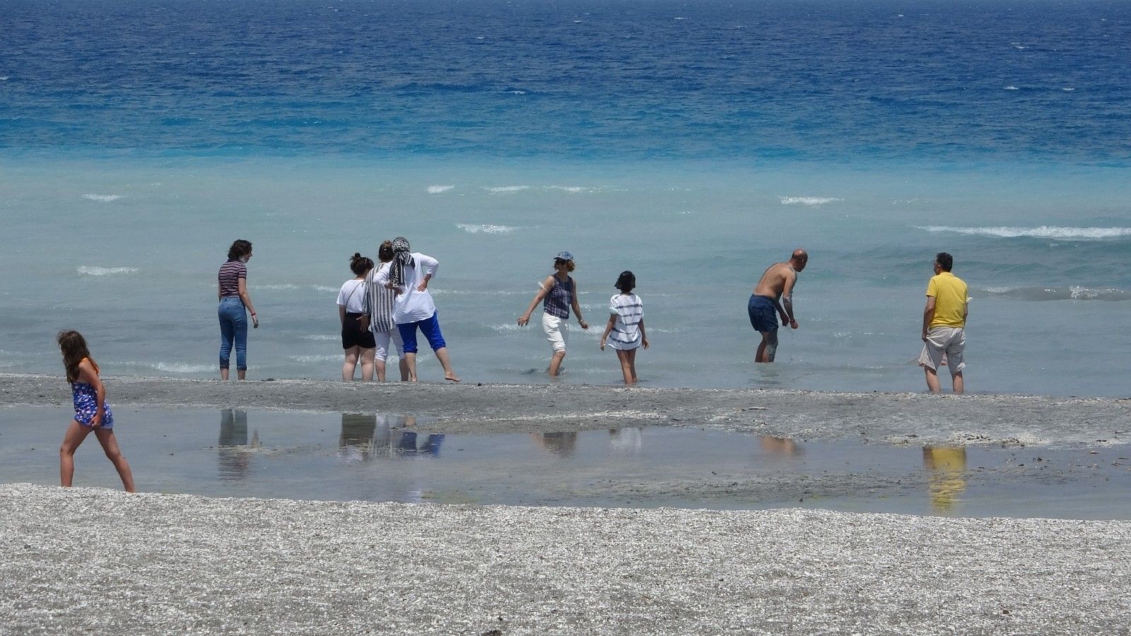 Halk plajını ailesiyle birlikte ziyaret eden Aytaç Tavlı, Marmaris'ten geldiklerini ve ilk kez Salda Gölü'nü gördüklerini söyledi. Tavlı, "Eşim gelmeyi çok istiyordu. Bu sene nasip oldu. Geldik, bayıldık, çocuklar çok sevdi. Yavaş yavaş da Pamukkale'ye doğru gideceğiz" dedi.