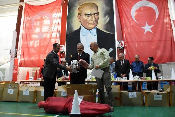 GENÇLİK ve Spor Bakanlığı tarafından okullarda sporun yaygınlaştırılması ve çocukların spora teşvik etmek için Manisa'nın Salihli ilçesindeki 58 okula spor malzemesi dağıtıldı.