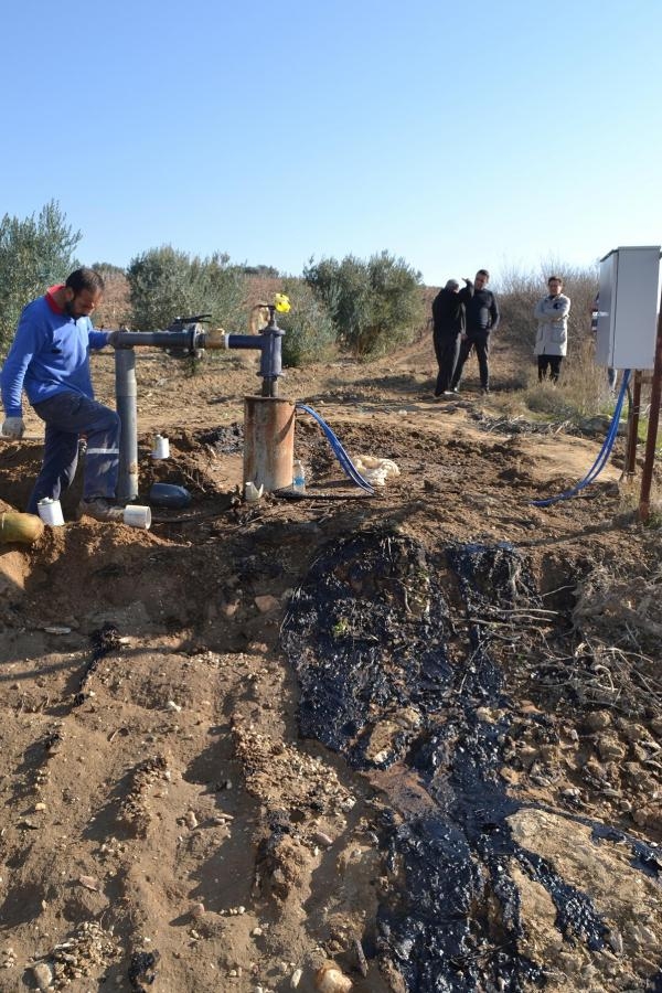 Yağbasan Mahallesi'nde Hilmi Yılmaz'a ait olan ve 10 yıl önce açıldıktan sonra siyah renkli bir madde çıktığı için kapatılan, ancak dün yine aktif hale getirilen kuyunun 208'inci metresinde yine yanıcı ve siyah renkli madde ile karşılaşıldı. Yılmaz, toplam derinliği 244 metre olan kuyunun 208'inci metresine geldiklerinde 10 yıl önceki manzaradan farksız bir durumla karşılaştıklarını söyledi. Sondaj kuyusunu üzüm bağını sulamak için yaklaşık 10 yıl önce açtıklarını belirten çiftçi Hilmi Yılmaz, "Bu bölgede 30 dekarlık bir üzüm bağım var. 10 yıl önce artan su ihtiyacı nedeniyle bu bölgeye bir kuyu açtık. O tarihte bu kadar olmasa da yine siyah renkte bir sıvı ile karışık su bulduk. Bu kuyumuzu bir süre kullandıktan sonra üzüm bağında kirlenmeler başladığı için iptal ettik. Üzüm bağına yakın bir mesafede yer alan havuzdan su ihtiyacını karşılıyorduk. Ancak su zaman içerisinde yetersiz kalmaya başlayınca bu kuyuyu yeniden aktif hale getirmeye karar verdik. 244 metre uzunluğundaki kuyumuza yeniden pompa kuruldu ve 208 metrede yine aynı manzara ile karşılaştık" dedi.