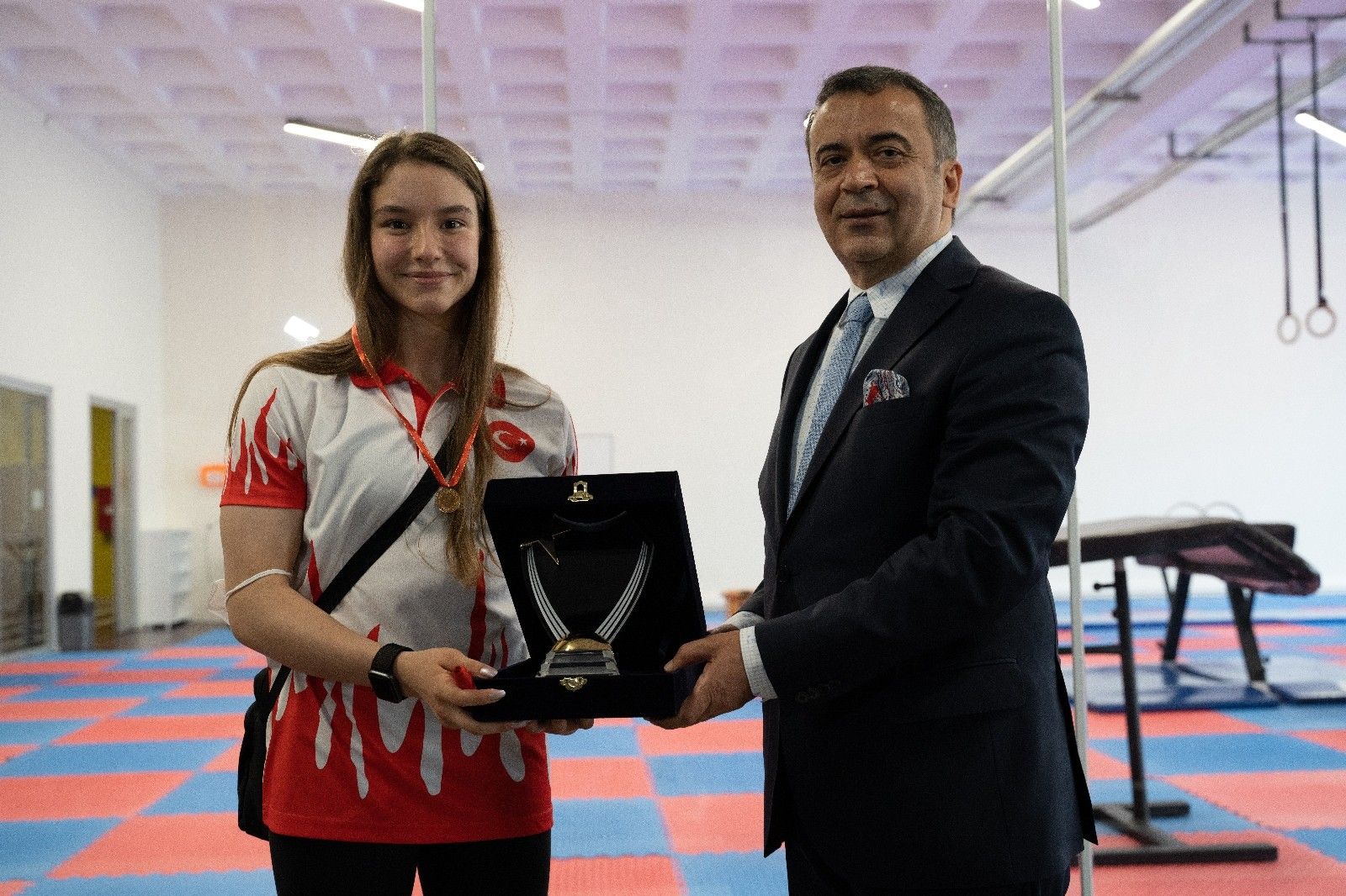 Üniversite olarak çok gururlandırdıklarını ve diğer öğrencilerin de bu anlamda örnek alması adına Ayşe Begüm Onbaşı'nın adını cimnastik salonuna verdiklerini söyleyen Mütevelli Heyeti Başkanı Abdülkadir Gayretli, "Üniversite öğrencimiz olan Ayşe Begüm Onbaşı hem üniversitemiz hem Türkiye'miz adına güzel bir başarıya imza attı. Bu kadar büyük bir başarıdan dolayı hepimiz çok gururlandık. Biz de üniversitemizdeki öğrencilerimizin hem örnek alması hem de her an Ayşe'yi hatırlaması için cimnastik salonumuza ismini verdik. Öğrencilerimizin de Ayşe gibi idealist, başarılı ve aktif olmasını istiyoruz. Şuana kadar öğrencileriminiz birçok dalda ulusal ve uluslararası başarıları var. Hepsinin Türkiye'mizde ve dünyada İstiklal marşını okutmalarını ve Türk bayrağımızı dalgalandırmasını istiyoruz. Hedefimiz aktif ve başarılı sporcu yetiştirmek. Gençlik ve Spor Bakanlığı ile yapmış olduğumuz protokol gereği başarılı öğrencilerimizin başarılarına başarı katmak, imkan oluşturmak, fırsat vermek ve ellerinden tutup dünya olimpiyatlarında başarı kazanmalarını istiyoruz" dedi.