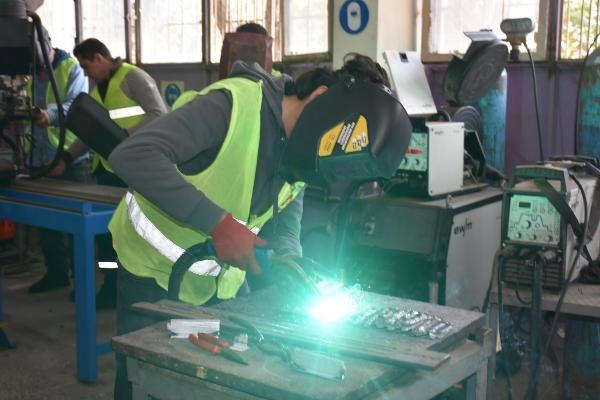 Kaynakçılık kursuna katılan ve eğitimi süren Buğra Taşke (25) de "4 haftadır kurstayım. 2 haftalık sürem kaldı. Kaynakçılık işini küçüklüğümden beri seviyorum. Erişim demirin kokusu parfümden güzel geliyor. Mesleğim olmadığı için bu sevdiğim işi tercih ettim. Bu kurs iş garantili olduğu için kursu tamamlayıp sınavları geçince bir kurumda görevime başlayacağım" diye konuştu. (DHA)