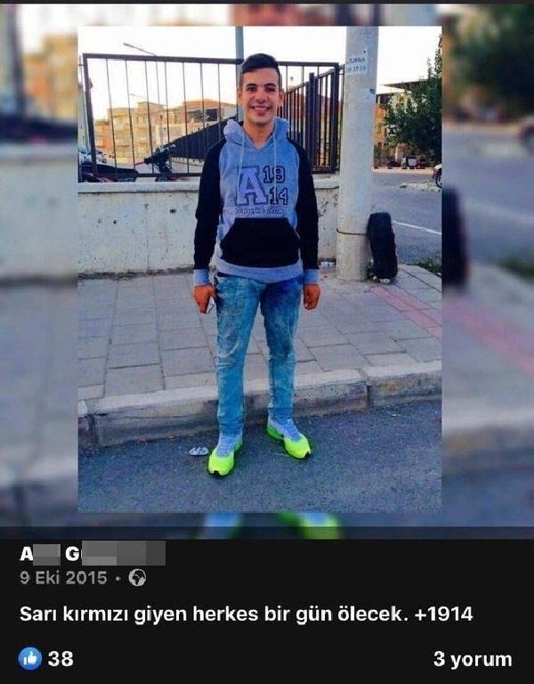 22'nci dakikada tatil edilen Göztepe-Altay maçı sonrası soruşturma sürerken, Göztepe taraftarı Mehmet Çakır'ı yaralayan işaret fişeklerini Gürsel Aksel Stadı'na soktuğu belirlenen özel ambulans şoförü Anıl Gügercin'in (25) sosyal medya paylaşımları ortaya çıktı. Altay taraftarı olduğu öğrenilen Anıl Gügercin'in, 7 yıl önce, sosyal medya hesabından 'Sarı kırmızı giyen herkes bir gün ölecek' paylaşımını yaptığı görüldü.