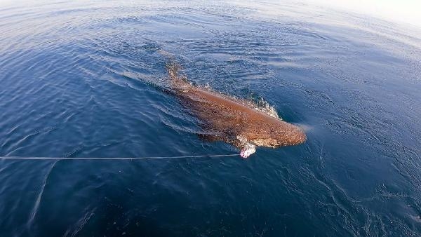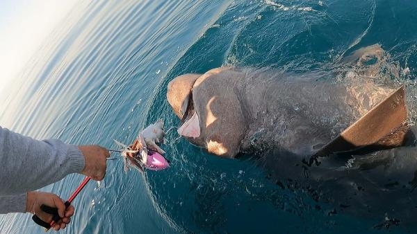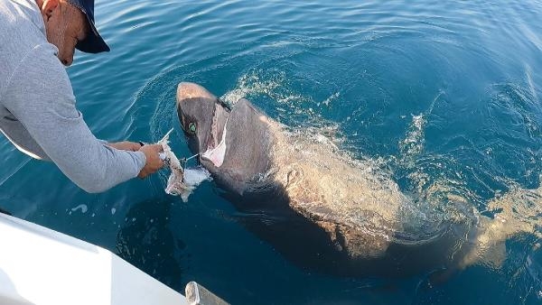 Zürafa Kayalıkları'nda tacize uğradığı Yunanistan Sahil Güvenlik unsurlarına direnen balıkçı İlker Özdemir, bu kez 3 arkadaşıyla Saros Körfezi açıklarında kılıç balığı avına çıktı. Özdemir ve arkadaşları 600 metre derinliğe olta bıraktı, bir süre sonra büyük bir balık oltaya takıldı. 40 dakikada çekilebilen balığın, camgöz cinsi köpek balığı olduğu görüldü. Balıkçılar, 3,5 metre boyunda, yarım ton ağırlığında ve 6 solungaçlı köpek balığını inceledikten sonra yeniden denize bıraktı.