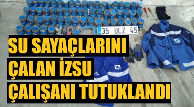 Şüphelinin otomobilinde yapılan aramada 60 civarında su sayacı ve İzmir Büyükşehir Belediyesi İzmir Su ve Kanalizasyon İdaresi (İZSU) yazılı ceket bulundu.