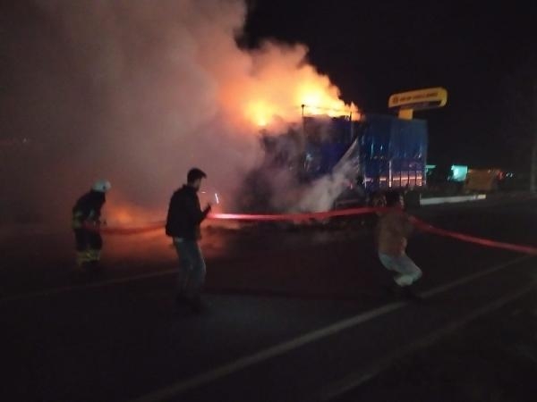Sebze ve meyve yüklü kamyon alev topuna döndü