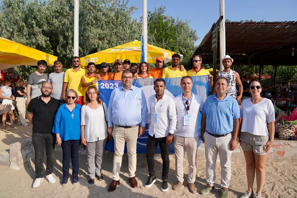 TÜRÇEV İzmir ve Kuzey İlleri Koordinatörü Doğan Karataş da, Seferihisar’ın en çok mavi bayrağa sahip ilçe olduğunu ifade ederek, “Denize ve kuma en ufak bir şey atarken bile lütfen çocuklarımızı düşünelim. Bu mavi bayraklar, yıllarca burada dalgalansın” diye konuştu.