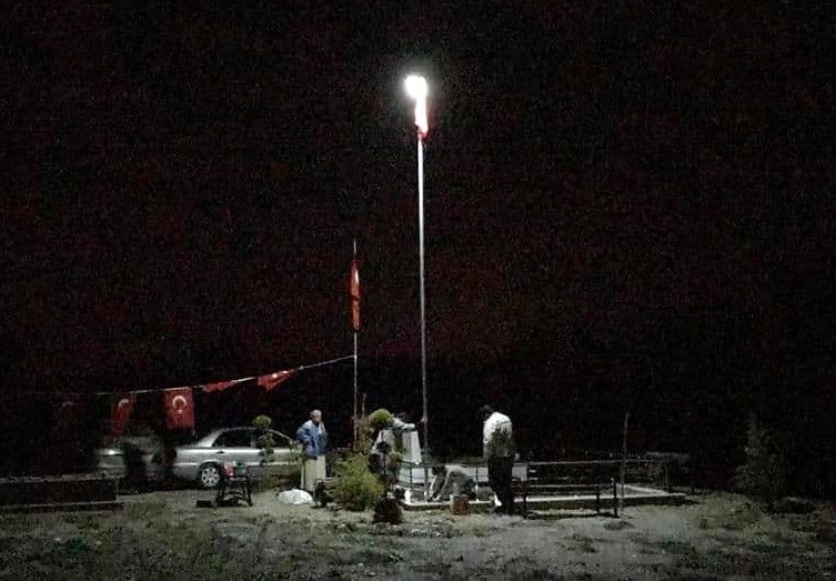 Şehidin mezarı ve Türk Bayrağı aydınlatıldı