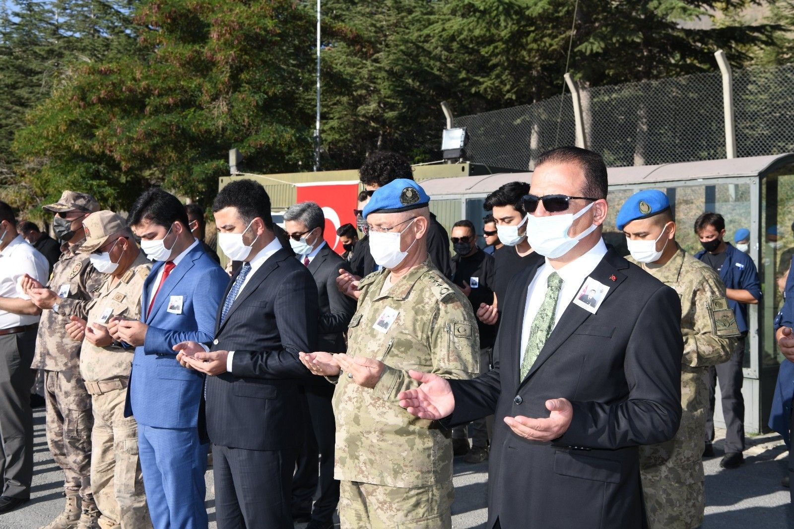 Irak'ın kuzeyindeki Goraspi Üs Bölgesinde PKK'lı teröristlerin taciz ateşi sonucu şehit olan Piyade Uzman Çavuş Halil Çelebi için uğurlama töreni düzenlendi.