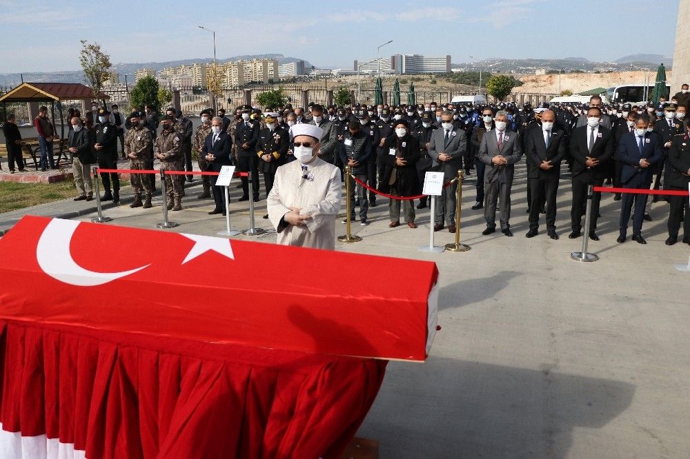 Saygı duruşunda bulunulmasının ardından İl Müftüsü Şaban Kondi tarafından kıldırılan cenaze namazı sonrası şehidin tabutu, silah arkadaşlarının omzunda ambulansa konuldu.