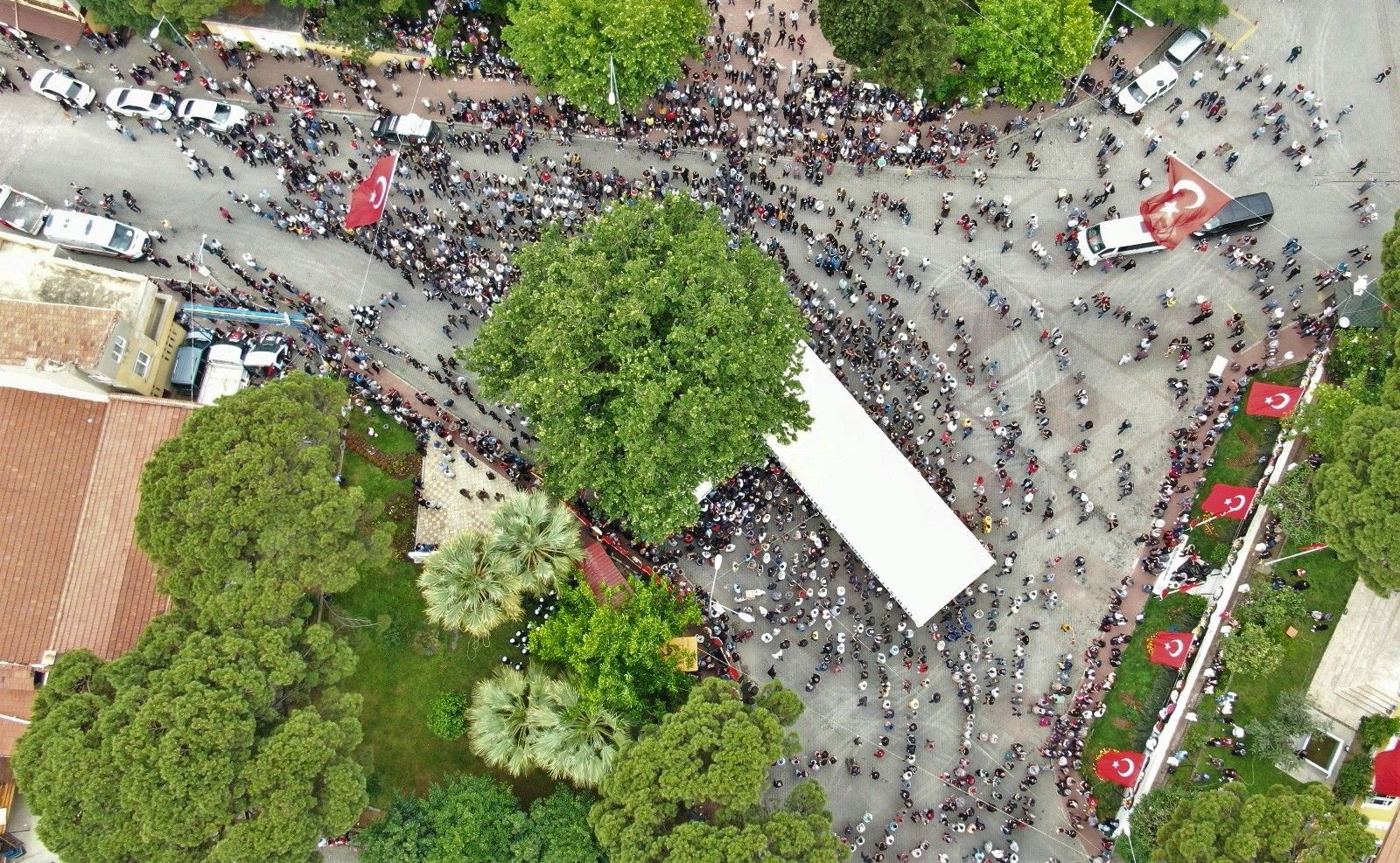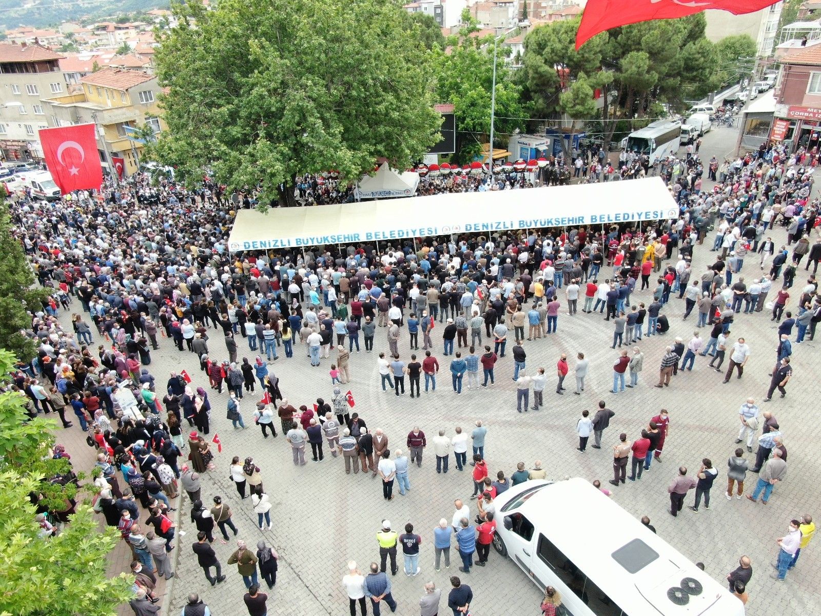Şehidin cenaze töreninde ise binlerce hemşehrisi son yolcuğuna uğurlamak için meydanları doldurdu. Yaşanan yoğunluk ve izdiham havadan görüntülendi.