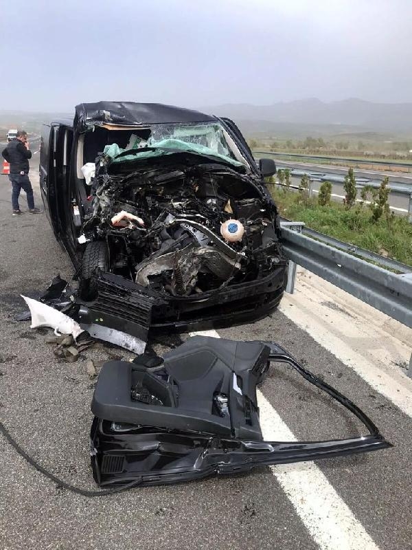 Kaza, dün saat 14.00 sıralarında, İstanbul-İzmir otoyolu Turgutlu ilçesi Sinirli Mahallesi mevkisinde meydana geldi. İstanbul'dan İzmir yönüne giden Kürşat Ö. (41) yönetimindeki 34 ET 3131 plakalı minibüs, aynı yöne giden Mazlum S. (42) yönetimindeki 16 AOH 177 plakalı kamyonete arkadan çarptı. Savrulup bariyere çarpan araçlardan, kamyonet devrildi. Minibüs sürücüsü Kürşat Ö. ile yolculardan şarkıcı Selami Şahin'in oğlu Emirhan Şahin, Celal Gökhan Güldal (46) ve Andreas Rangavis (47) yaralandı.