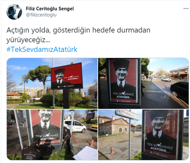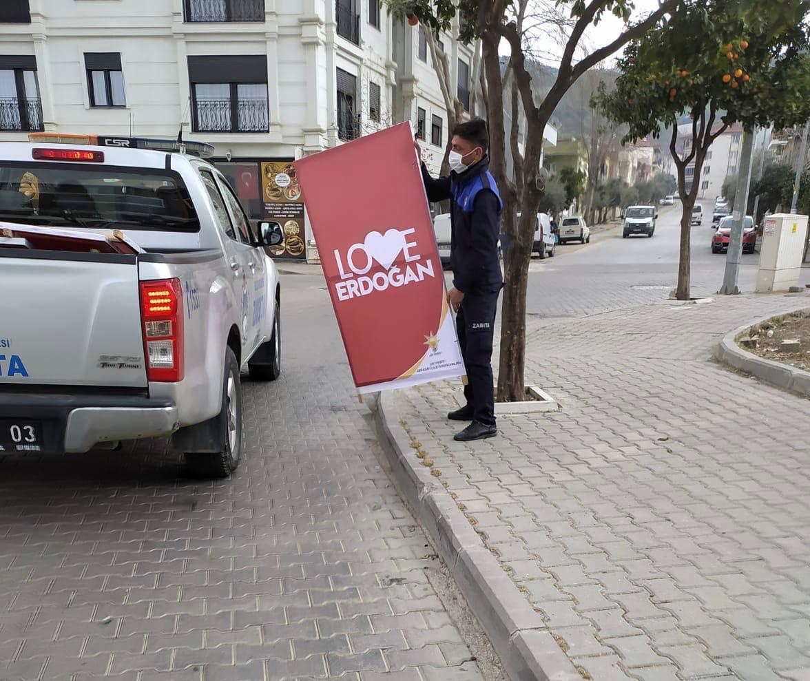 Efes Selçuk'ta AK Parti tarafından hazırlanan 'Love Erdoğan' afişleri ilçe belediyesi tarafından izinsiz olarak kamusal alana yerleştirildikleri nedeniyle kaldırılmış ve konu siyasi bir krize neden olmuştu. Efes Selçuk Belediyesi bugün ilçedeki billboardları 'Tek Sevdamız Atatürk' afişiyle donattı.