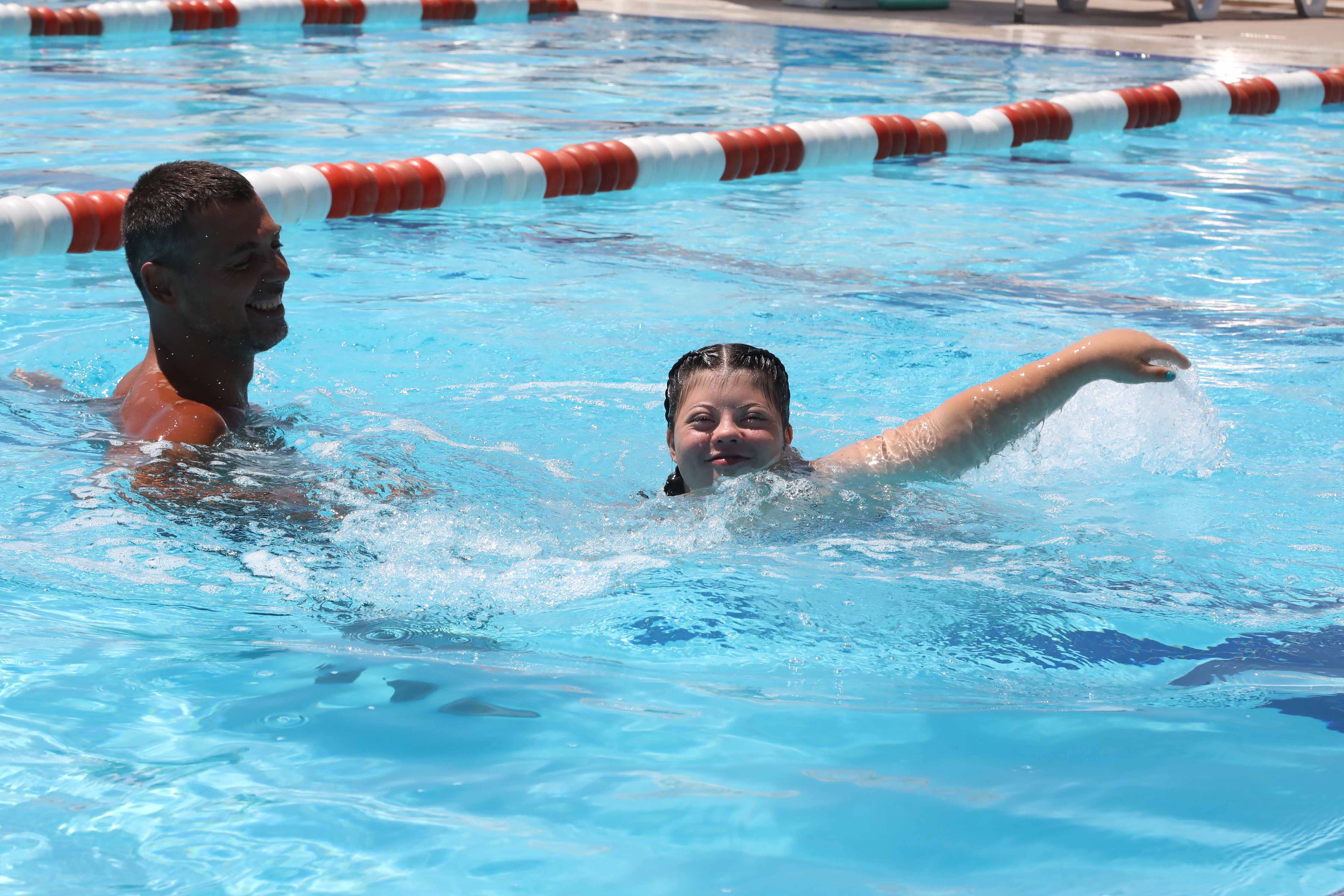 Jimnastik, bale, tenis, paten gibi bir çok spor dalında elde ettiği başarılarla yaşıtlarına istenildiğinde ve imkan verildiğinde nelerin başarılabileceğini gösteren Selin Durgut (17), Bayraklı Belediyesi yüzme havuzunda idman yaparak, özel sporcular yüzme turnuvalarına hazırlanıyor. Belediyenin havuz eğitmeni eşliğinde haftanın iki günü büyük heyecanla idman yapan Selin, yarışmalara katılıp, şampiyon olmak istiyor.