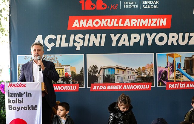 Bayraklı’daki eğitim yatırımları, inşa edilen okul öncesi eğitim kurumları ve öğrencilerinin başarılarıyla fark yaratan Bayraklı Belediyesi, inşasını tamamlayarak hizmete sunduğu 3 anaokulunun açılışını yaptı. 2 anaokulunun yapımına devam edildiği bir anaokulunun da yakın zamanda temelinin atılacağı belirtildi. 75’inci Yıl Mahallesi’ndeki Elif Bebek Anaokulu bahçesinde düzenlenen açılış törenine Başkan Serdar Sandal’ın yanı sıra CHP Bayraklı İlçe Başkanı Didem Gültekin, meclis üyeleri, muhtarlar, sivil toplum örgütlerinin temsilcileri, öğrenciler, veliler ve vatandaşlar katıldı. Başkan Sandal, açılış kurdelesini katılımcılar ve çocuklarla birlikte kesti.