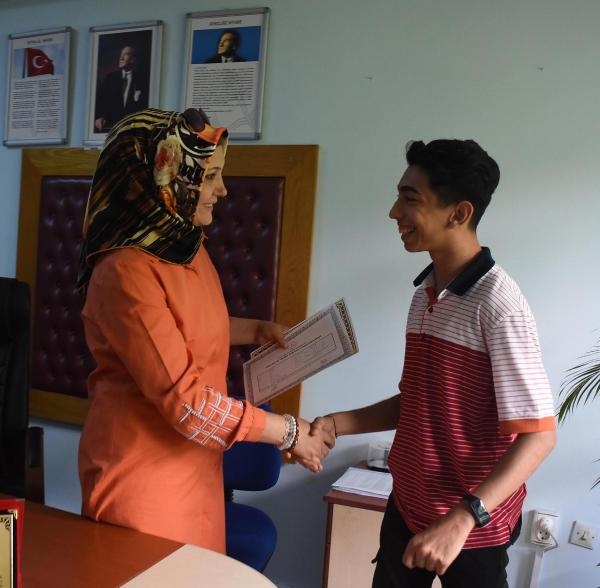 Üniversite sınavına 'sınav korkusu' nedeniyle giremediğini dile getiren Adem Atmaca ise lise mezunu olarak KPSS'ye gireceğini söyleyerek, "Bu yıl haftada 3 gün staj yaptım. Okulda Sevgi hoca bana çok yardımcı oldu. Bundan sonra bilgisayar başında bir işte çalışabilirim" ifadelerini kullandı. Okul Müdür Yardımcısı Sevgi Koska da "Okulumuzda iki bilişim, bir muhasebe olarak 3 şubemiz vardı. Adem not ortalamasıyla birinci oldu. 2 yıl önce Anadolu lisesi olduk ama Adem aynı müfredatına devam etti. Onu sevdik, o da bizi sevdi. Saygısını hiç eksik etmedi. Adem'in ilk geldiği günü hatırlıyorum, denge sağlayamıyordu. Merdiven çıkamadığında arkadaşları yardım etti. Ama çok güçlü bir çocuk. Daha iyi yerlere geleceğine inanıyorum. Devamsızlığı olmayan bir öğrenciydi. Oysa özel durumu nedeniyle bu hakkı sınırsızdı. Fakat okula gelmemezlik yapmazdı. Hasta olduğunda bile gelmek istiyordu. Dersleri kaçırmamak için her gün geldi. Hep iyi yerlere geleceğine inanıyorum" dedi. (DHA)