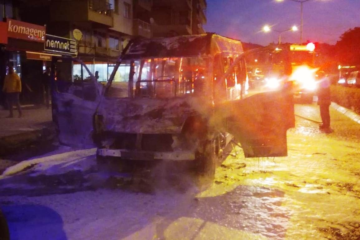 Edinilen bilgilere göre, İzmir Caddesinde ilerleyen Bayram Ali K.'nin kullandığı 10 BEU 74 plakalı servis minibüsünden seyir halindeyken alevler yükseldi. Bayram Ali K., aracını durdurarak yangın söndürme tüpüyle yangına müdahale etti. Park halindeki iki otomobile de sıçrayan yangın itfaiye ekiplerince söndürüldü.