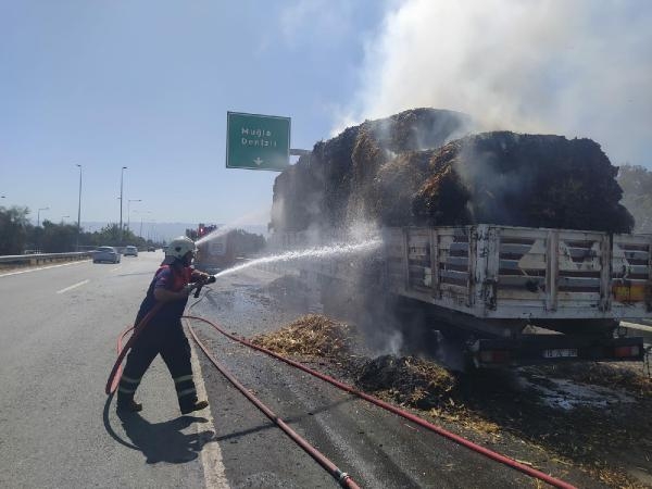 Yangın, saat 12.30 sıralarında İzmir-Aydın Otoyol Gişeleri çıkışında meydana geldi. Aydın'dan Muğla yönüne giden Hasan Ece'nin kullandığı 07 AAD 630 plakalı TIR'ın dorsesindeki samanlar, birden alev aldı. Samanların yanmaya başladığını fark eden Ece, TIR'ı yol kenarına çekti. İhbarla olay yerine sağlık, itfaiye ve polis ekipleri sevk edildi. Ekiplerin müdahalesi ile yangın, kısa sürede söndürüldü. Samanlar yanarken, TIR'da küçük çapta hasar oldu. Yangın ile ilgili soruşturma başlatıldı. (DHA)