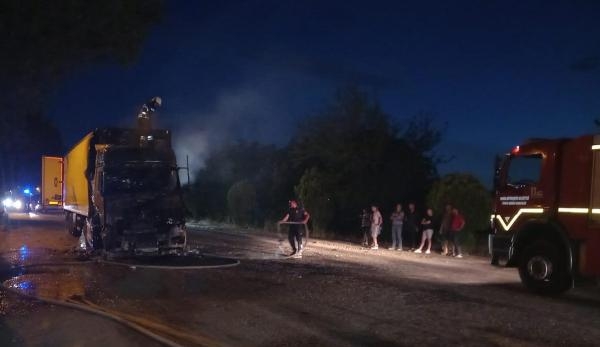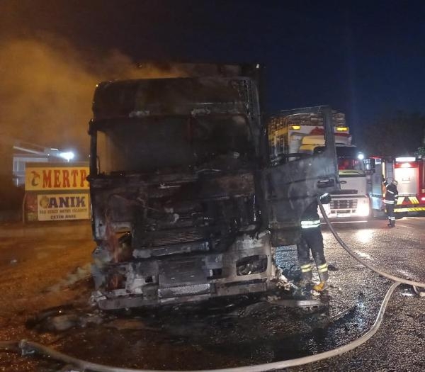 Seyir halindeki TIR alev aldı, sürücü son anda kurtuldu