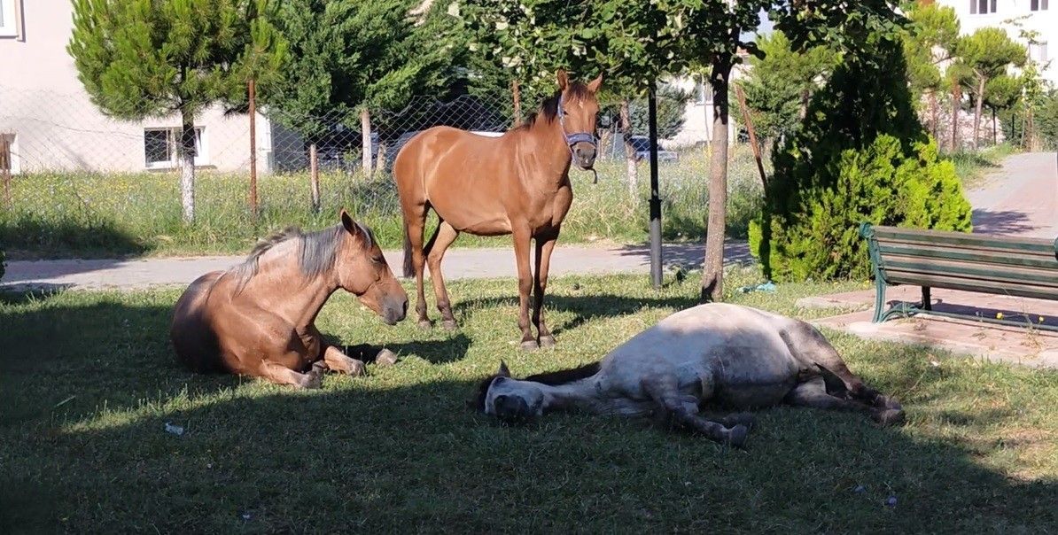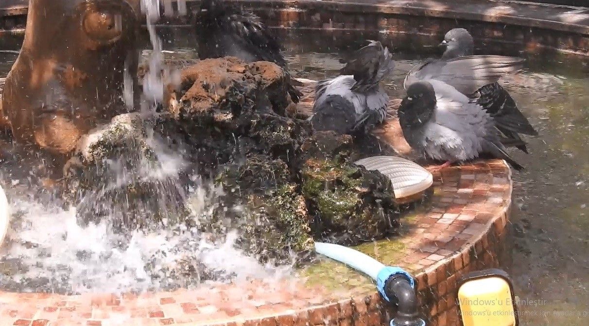 Saraçlar Caddesi'nde bulunan kuşlar süs havuzunda serinlemek için adeta yarışa girdi. Havuzdan su içen kuşlar daha sonra adeta su ile dans etti. Barutluk Mahallesi'nde de güneşli havadan olumsuz etkilenen atlar gölgelik alanda soluğu aldı. Ağaçlık alanların gölgesine yatan atlar hem dinlendi hem de güneşten korundu.