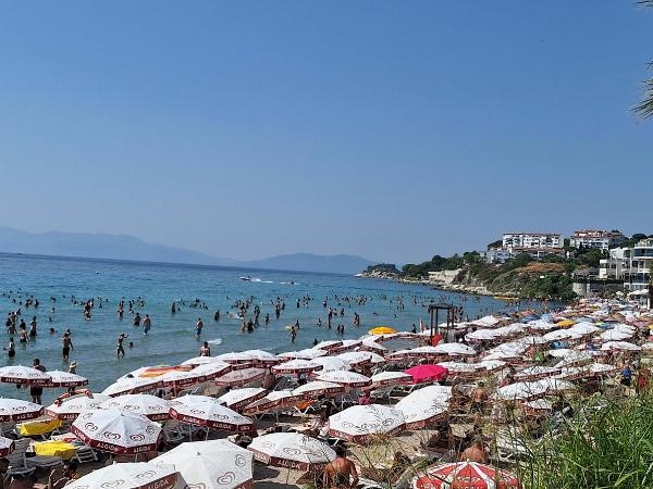 Sıcak hava bunalttı; Kuşadası'nda plajlar doldu