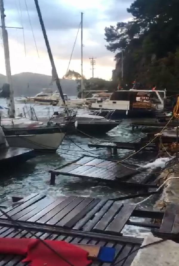 Şiddetli rüzgarda iskeleler parçalandı, tekneler battı