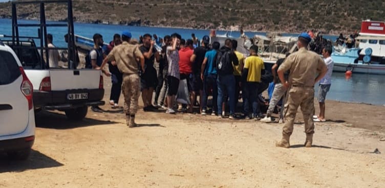 Urla İlçe Jandarma Komutanlığı ve ilden gelen komando timi, drone ile mültecilerin bulunduğu bölgeyi tespit etti. Karadan ulaşılması güç olan koya Jandarma ekipleri, balıkçı tekneleriyle ulaştı. Bitkin halde bulduğu mültecileri teknelerle karaya taşıdı. Jandarma karakoluna götürülen mültecilerin karnı doyruldu.