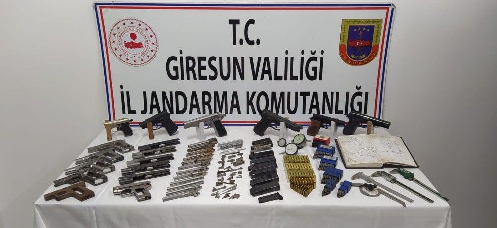 Espiye ilçesi Cibril mahallesinde İ.K. ve M.K.'ya ait ev ve eklentilerinde İl Jandarma Komutanlığı ekipleri tarafından yapılan aramalarda 1 adet silah imalathanesi bulundu. Aramaların devamında 3'ü el yapımı, 3'ü de kuru sıkıdan dönüştürme toplam 6 tabanca, 6 adet tabanca gövdesi, 5 adet üset kapak, 12 adet tabanca namlusu, 10 adet şarjör, 190 adet 9 mm fişek, 12 adet 7,65 mm fişek, 8 adet 6,35 mm fişek, 1 adet torna makinesi, 1 adet freze makinesi, 1 adet dikey matkap, 1 adet el spirali, ele geçirildi.