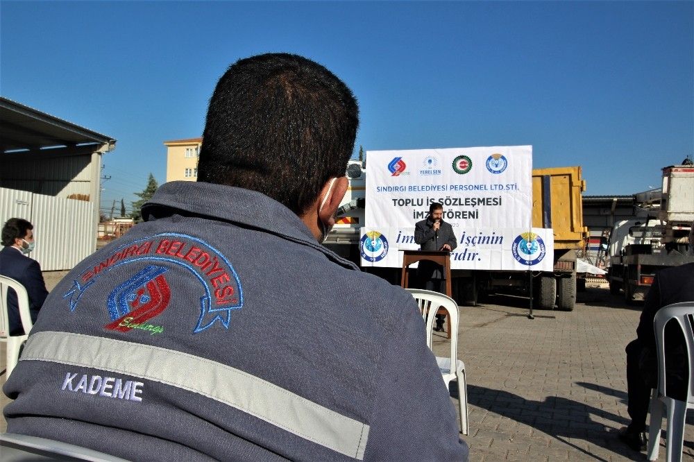 İmza törenine; Sındırgı Belediye Başkan Ekrem Yavaş, başkan yardımcıları Salih Durak, Halil Aldemir, Çağrı Çağatay Çavdar, Sendika Yönetim Kurulu ve Temsilcileri ile Sındırgı Belediye personeli de katıldı.
