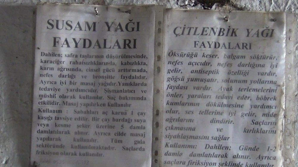 Keramettin Küçük, değirmen ilk kurulduğunda dibek taşını atların çevirmesiyle yağ elde ettiklerini, malzemeler yıpranınca pres yağ makinesine geçerek elle yağ çıkardıklarını belirtti. Babasının yaşlandıktan sonra değirmeni çalıştırdığını söyleyen Küçük, susamın kalitesine göre üç ila üç buçuk kilodan bir kilo yağ çıktığını kaydetti. 1966 yılında babası tarafından susam, afyon ve çitlembik yağı çıkarmak için değirmenin kurulduğunu ifade eden Keramettin Küçük, yağ çıkarmak için değirmene gelen müşterilere susam yağı ve çitlembik yağının faydaları ve nasıl kullanılması gerektiğini anlatıyor. Meşe odununda yanan ateşte kavrulan susam ve çitlembikleri daha sonra kıl torbalara koyarak pres makinesinde el gücüyle yağını çıkardıklarını ifade eden Keramettin Küçük, "Değirmen 1966 yılında kuruldu. Baba mesleği. Köylülerin kaldırdığı susamların yağını çıkarıyoruz. Makinede öğütüyoruz, daha sonra kavuruyoruz, kavurduktan sonra kıl torbaya koyup makinede yağını çıkarıyoruz. Başka torbaya koyarsak patlar, onun için keçi kılından dokuduğumuz torbaya koyuyoruz. Babam 1966 yılında kurdu bu değirmeni o zamandan bu zamana yürütüyoruz. Babam ihtiyarladıktan sonra mesleği ben devraldım yaklaşık on yıl oldu. Daha önce babam yapıyordu bu mesleği tabi susam ekimi azaldığı için biraz ara verildi sonra yine başladık. Değirmende susam, çitlembik ve afyon yağı çıkarıyorduk tabi afyon yasaklandığı için şimdi sadece susam ve çitlembik yağı çıkarıyoruz. Diğer yağlara göre doğal olduğu için susam yağı daha çok tutuluyor piyasada. Müşteri geliyor bize yağ çıkar diyor bizde yağı çıkarıyoruz. Susam güzel olursa üç buçuk kilo susamdan bir kilo yağ çıkıyor, çitlembikte dört kiloda bir kilo yağ çıkıyor. Çitlembik ergin olması lazım kırmızı olursa yağ çıkmaz. Susamda ise biz birinci silkim diyoruz ilk akıttığı zaman o susamdan üç kiloda bir kilo yağ çıkar. Makinede öğüttükten sonra kavurmaya geçeriz tabi susamın durumuna göre iki litre su atıp tavlarız o kendi kıvamına geliyor. Su attıktan sonra kontrol ederiz kıvama gelene kadar kavururuz. Kıvama geldikten sonra torbaya koyup tezgaha götürürüz. Yaş koyarsan patlar, biraz fazla kavurursan yağ acı olur. Onun için tam kıvamını bulmak lazım. Eskiden at ile dönülürdü yağ çıkarılırken tabi düzenler yıpranınca makineye geçtik. Makineye geçtik ama düzenler hala duruyor elimizde. Şimdi makinede elle çıkarıyoruz" dedi.