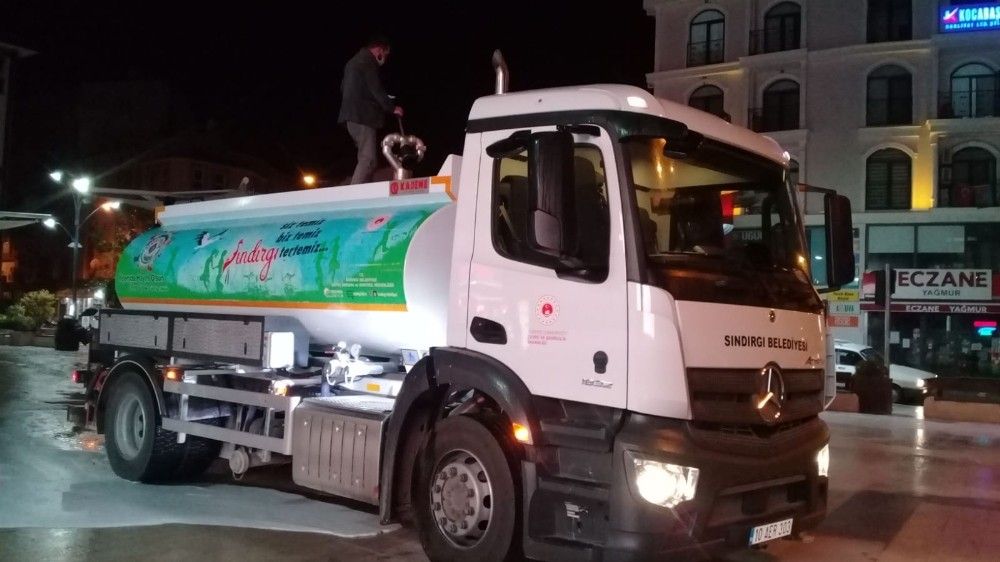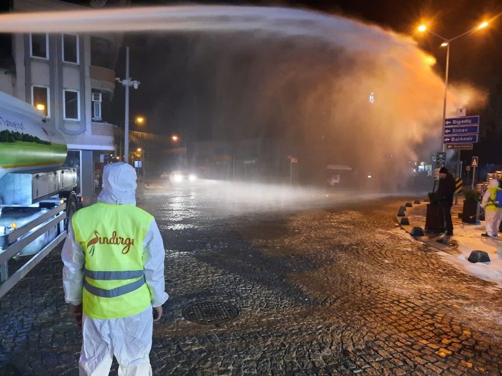 Balıkesir Büyükşehir Belediyesi ile koordineli bir şekilde çalışmalarını yürüten Sındırgı Belediyesi ekipleri özellikle vatandaşların yoğun olarak kullandığı Cumhuriyet Meydanı ve pazar yeri başta olmak üzere toplu kullanım alanlarını köpük köpük yıkıyor. Sındırgı Belediyesi rutin olarak çalışmalarını sürdürdüğü gibi pozitif vaka olan konutlarda, özel araçlarda, işyerlerinde de ücretsiz dezenfekte hizmeti veriyor.