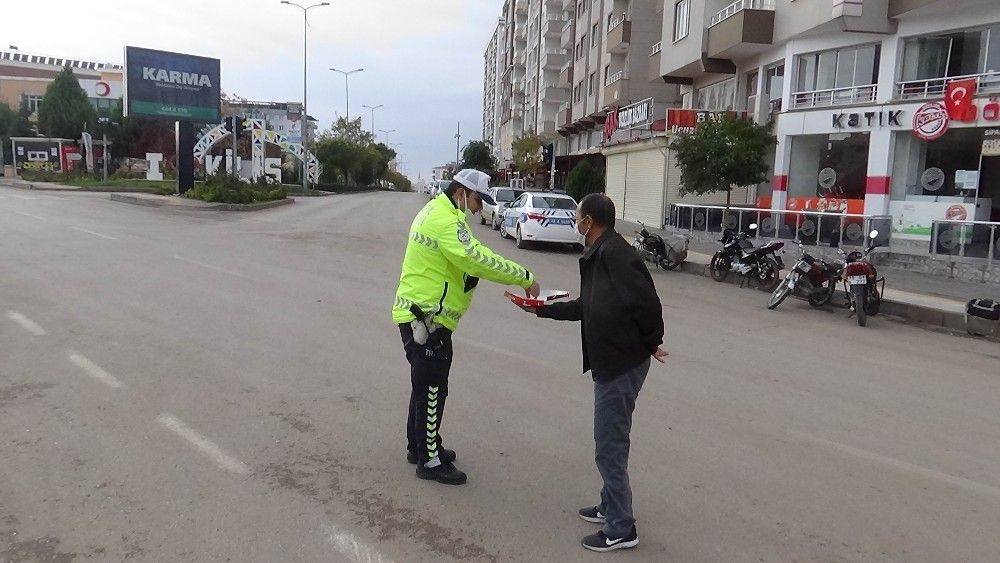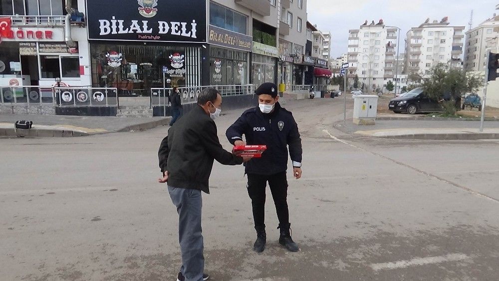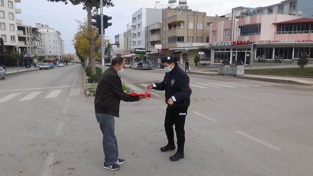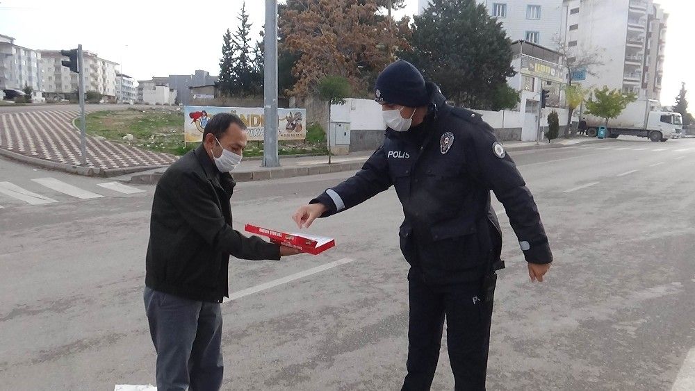 Suriye sınırına sıfır noktada bulunan Kilis'te korona virüsle mücadele kapsamında sokağa çıkma kısıtlaması sürerken, soğuk havada uygulama yapan polislere vatandaşlar lokum ikram etti