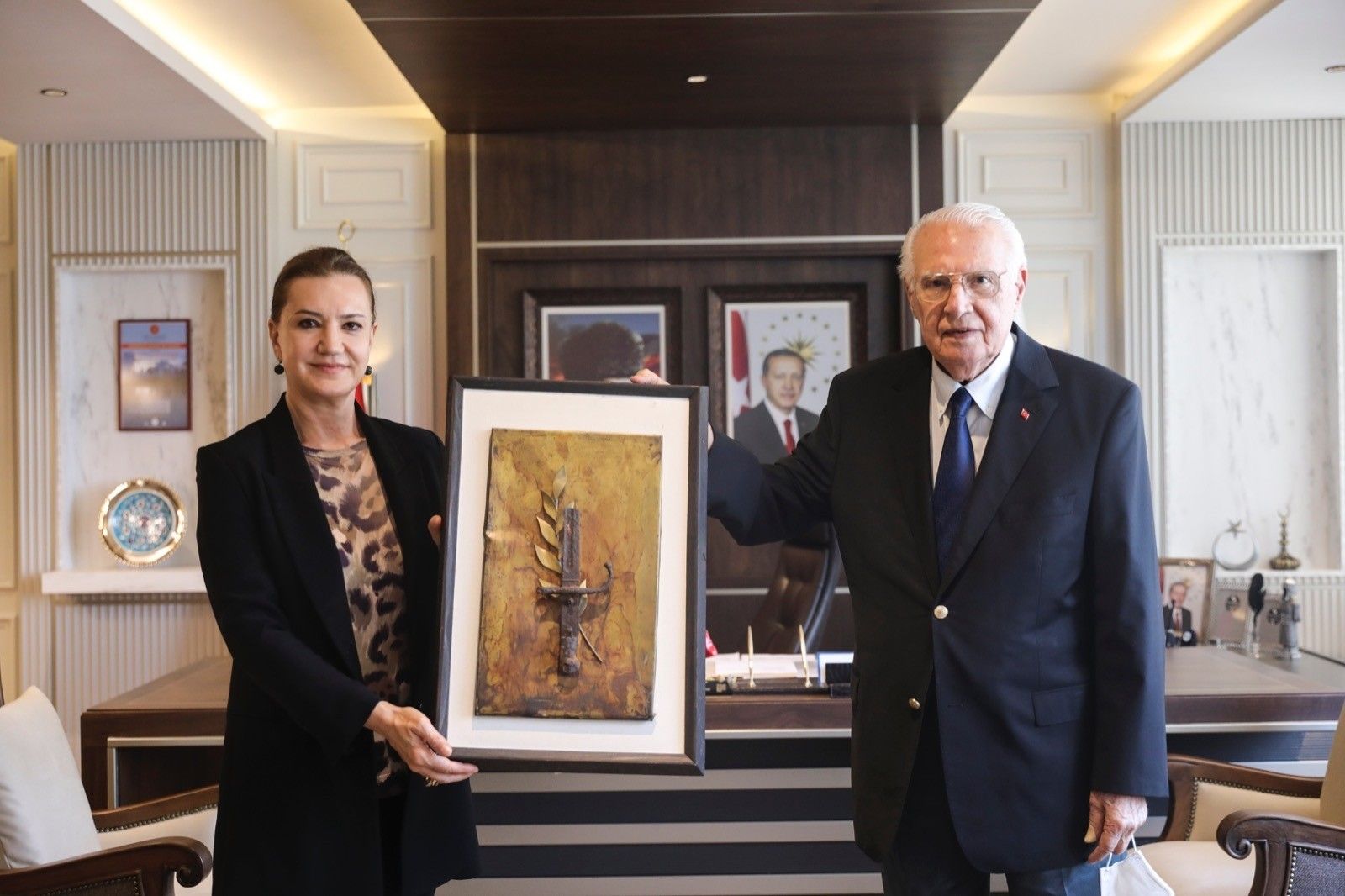?Bayrakbilim ve Türk Bayrakları Müzesine bir bağış da DEÜ İktisadi ve İdari Bilimler Fakültesi emekli öğretim üyesi Prof. Dr. Adnan Gülerman'dan geldi. Bir dönem hocalığını da yaptığı DEÜ Rektörü Prof. Dr. Nükhet Hotar'ı ziyaret eden Prof. Dr. Gülerman, 1950 yılında Çanakkale'de kendisinin bulduğu ve 1922 yılında bölgedeki kahraman Türk askerleri tarafından kullanıldığı tahmin edilen süngüyü Bayrakbilim ve Türk Bayrakları Müzesi'ne bağışladı. Rektör Hotar, Gülerman'a kıymetli bağışları nedeniyle teşekkür etti.
