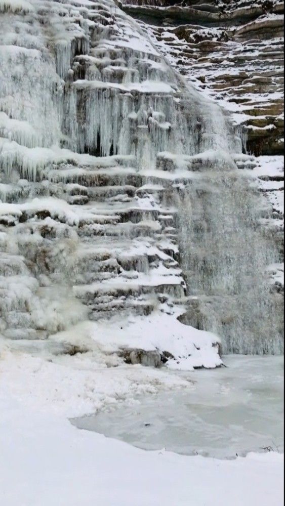 Sinop'un Gerze ilçesine bağlı Çağlayan köyündeki şelale, soğuk havanın etkisiyle donarak adeta buzdan "görsel şölen" oluşturdu. Şelalede sarkıtlar da oluştu.