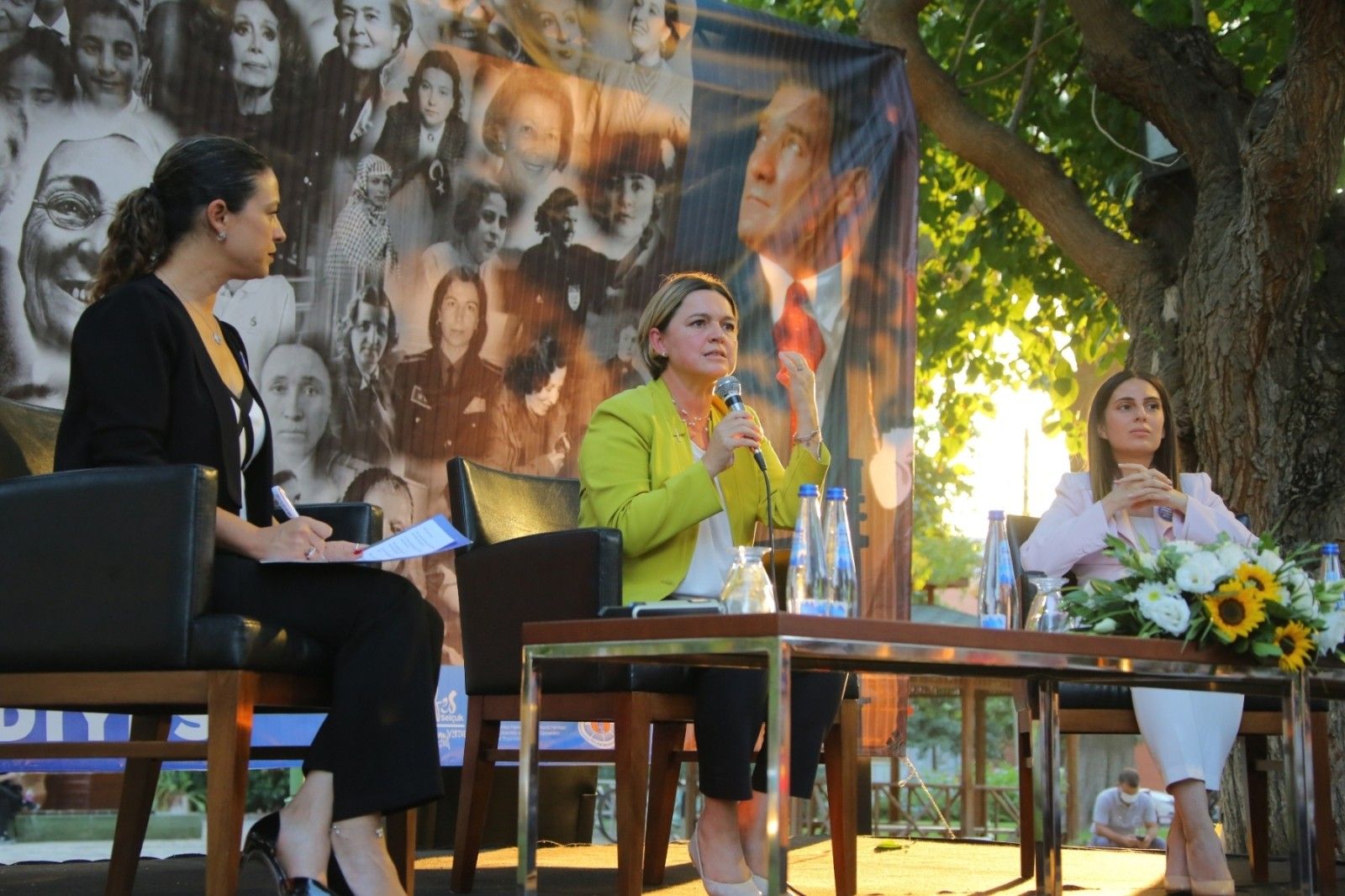 Selçuk Belediyesi, "Siyaset, Ekonomi ve İnsan" konulu söyleşiye ev sahipliği yaptı. Programa, CHP Genel Sekreteri ve İzmir Milletvekili Selin Sayek Böke, CHP Parti Meclisi Üyesi Gizem Sayar Özcan ve moderatör olarak Selçuk Belediye Başkanı Filiz Ceritoğlu Sengel katılırken, Ahmet Ferahlı Parkı'nda düzenlenen söyleşide ayrıca CHP il ve ilçe örgütü üyeleri, çok sayıda vatandaş yer aldı.