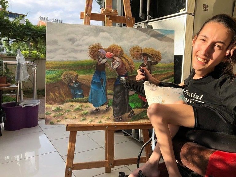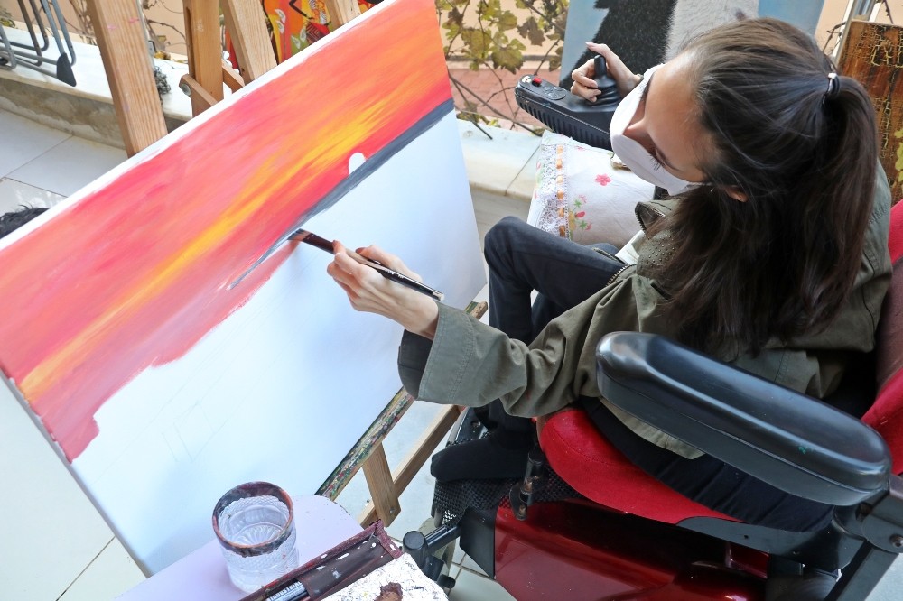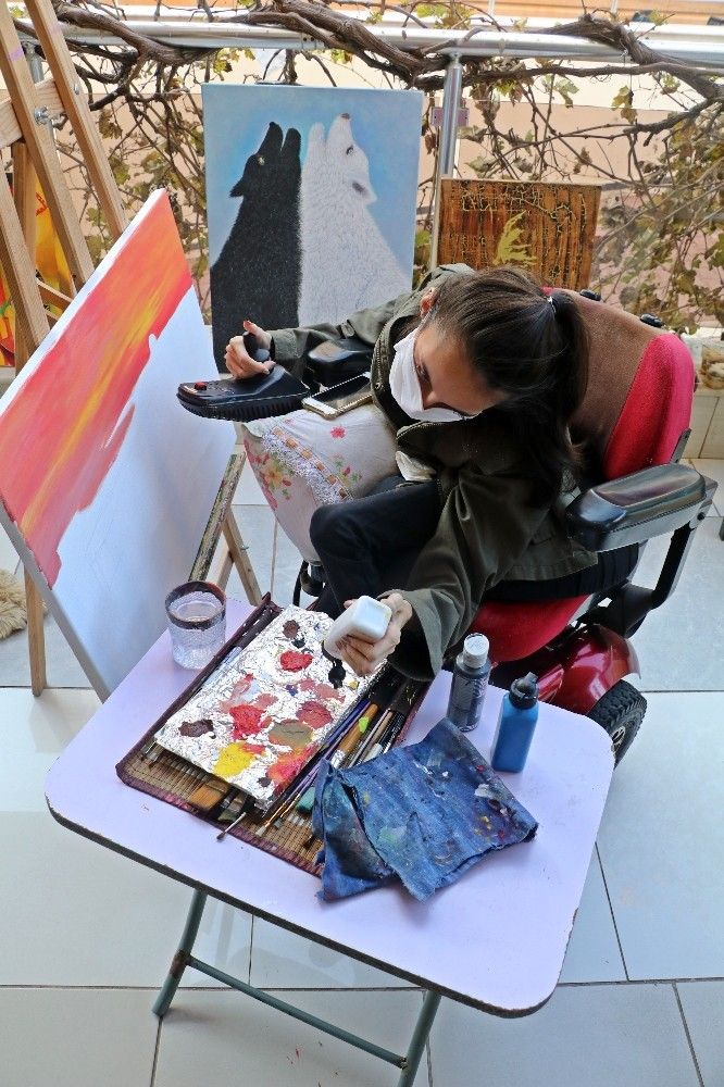 SMA hastası genç kadın, fırçasıyla mucizeler yaratıyor