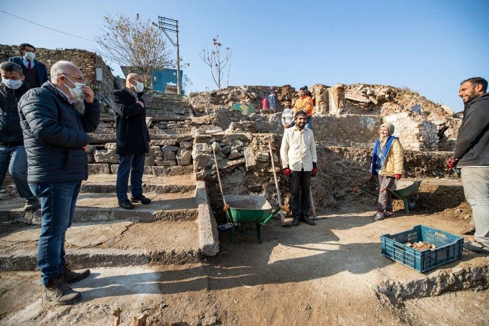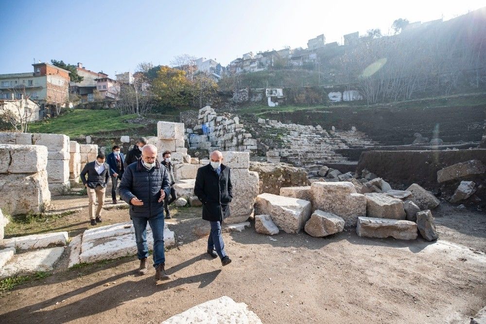 Başkan Soyer geçen hafta kazı alanını ziyaret ederek İzmir Kâtip Çelebi Üniversitesi Öğretim Üyesi ve Smyrna Antik Kenti Kazı Başkanı Doç. Dr. Akın Ersoy'dan bilgi almıştı. Burada yaptığı açıklamada Soyer tiyatronun üç kademeli izleyici bölümünün doğu tarafında 16 oturma sırasının, sahne binasında yedi kulis mekanı ve servis koridorunun ortaya çıkarıldığını söylemişti. Smyrna Antik Kenti kazıları Kültür ve Turizm Bakanlığı ile İzmir Büyükşehir Belediyesi arasında imzalanan protokol kapsamında destekleniyor. Kazılar ise antik tiyatronun sahne kısmında sürüyor.