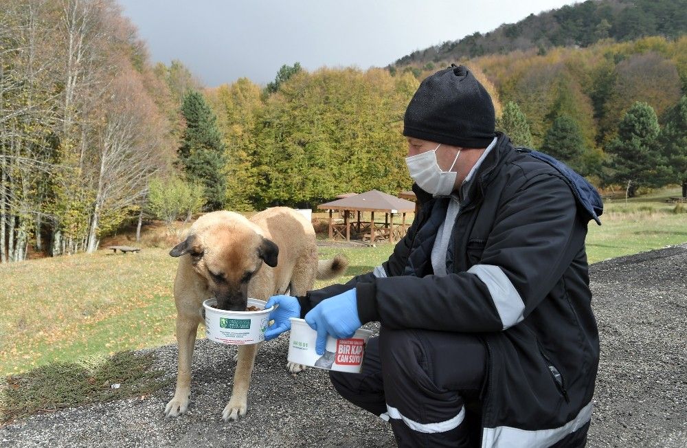 Osmangazi Belediyesi, Uludağ'da yiyecek bulmakta zorlanan sokak hayvanlarını unutmuyor