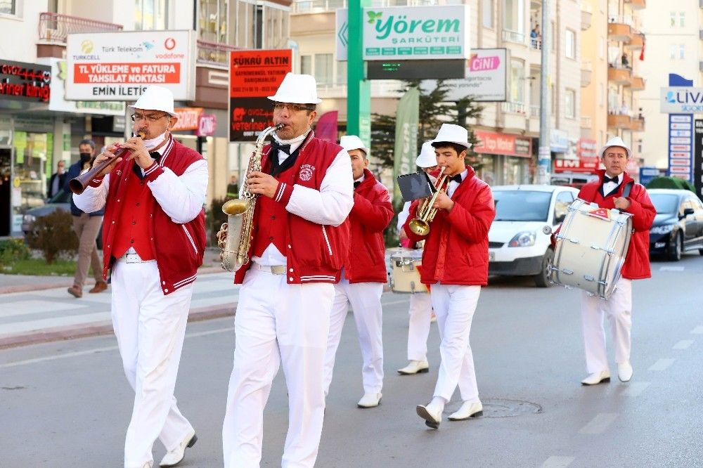 Sokağa çıkma kısıtlamasında Aksaray Belediyesi vatandaşlara moral olması için bando takımıyla sokak sokak konser verdi