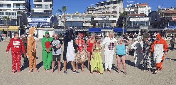 Aralarında Türk, İngiliz, İskoç ve İrlandalıların bulunduğu grup, sokak hayvanları yararına düzenlenen ve yılbaşı hediyelerinin verildiği ilk gün anlamına gelen 'Boxing Day' etkinliği kapsamında Altınkum Plajı'nda buluştu. Bu grup içerisinden 30 kişi, çeşitli kostümleriyle denize girerek yaklaşık 15 dakika suda kaldı. Sahipsiz sokak hayvanları için denizin soğuk olmasına aldırmayan grup, sudan çıkarken etkinliği izleyenler tarafından alkışlandı. 2'nci el giysi satışı ile etkinliğe katılanların bağışlarıyla toplanan paralar, Didim Belediyesi Sokak Hayvanları Barınağı'ndaki sahipsiz hayvanların kuru mama ve ilaç gibi ihtiyaçlarının karşılanmasında kullanılacağı ifade edildi. Etkinlik hakkında açıklama yapan Leander Wymam, "Her yıl aralık ayının 26'ncı günü düzenlenen etkinlikte denize girerek farkındalık yaratarak, bu etkinlikte elde edilen geliri Didim Belediyesi Sokak Hayvanları Barınağı yararına kullanıyoruz. Bu yıl 30 arkadaşımız çeşitli hayvan kostümleri ile denize girdiler" dedi.(DHA)