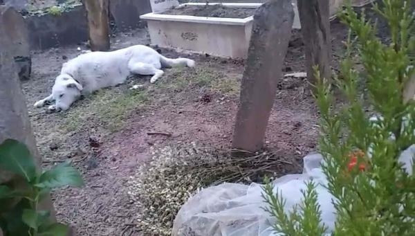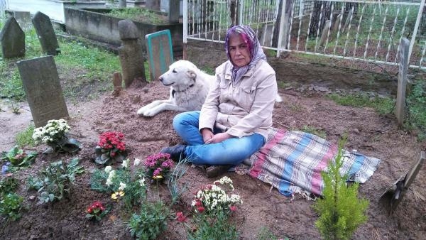 MANİSA'nın Demirci ilçesindeki polis lojmanında başından tabancayla vurulmuş halde ölü bulunan Yeşim Akbaş'ın (26), bundan 5 yıl önce sokakta yaralı bulup, tedavisini yaptırdığı sokak köpeği, mezarının başında bekliyor. Yeşim'in 'Pamuk' adı verdiği köpeği, görenleri duygulandırıyor.