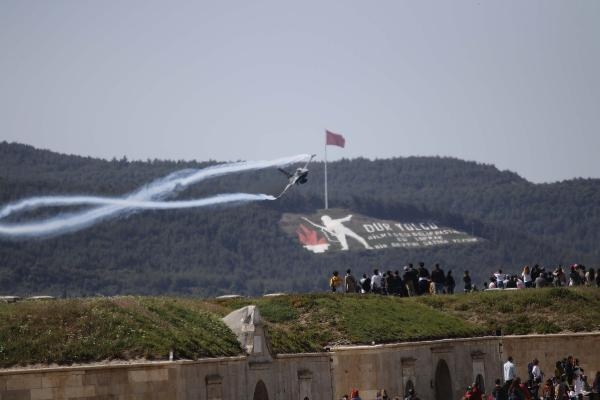 SOLOTÜRK, Çanakkale Kara Savaşları'nın 107'nci yıl dönümü nedeniyle yarın da Şehitler Abidesi'nde uçuş gerçekleştirecek. (DHA)