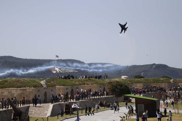 TÜRK Hava Kuvvetleri'nin gösteri ekibi SOLOTÜRK, Çanakkale'de 23 Nisan Ulusal Egemenlik ve Çocuk Bayramı etkinliklerinin yapıldığı Anadolu Hamidiye Tabyası semalarında çocuklar için uçuş gerçekleştirdi.