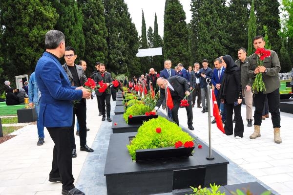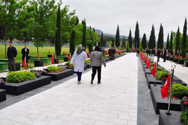 Yakınlarının mezarlarını sulayarak çiçek bırakan, dualar eden aileler, gözyaşlarına hakim olamadı. Manisa Valisi Yaşar Karadeniz, beraberindeki heyet ile şehitliği ziyaret ederek karanfil bırakıp, dua etti. 53 günlükken babası Ramazan Doğan'ı kaybeden Ebrar Doğan (10) da ailesiyle birlikte şehitliğe geldi. Ebrar, annesi Şahinaz Doğan (40) ile babasının mezarına karanfil bıraktı. Ramazan Doğan'dan geriye, kızı Ebrar kucağındayken çekilen bir fotoğraf kaldı.