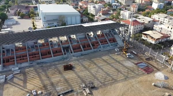 TFF 2'nci Lig Kırmızı Grup'ta play-off yarışı veren Somaspor'un kullanacağı yeni stadın inşaatı tüm hızıyla sürüyor.