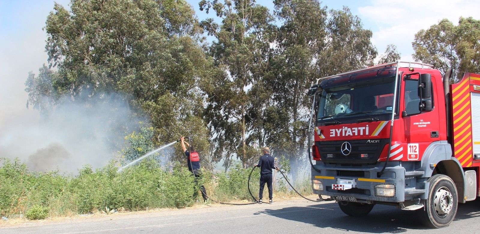 Aydın-Muğla yolu üzerinde meydana gelen arazi yangını, itfaiye ekipleri ile vatandaşların ve jandarmanın uzun uğraşları sonucu söndürüldü. Karayolu kenarında başlayan yangının söndürülmeden atılan sigara izmaritinden çıktığı belirtildi.